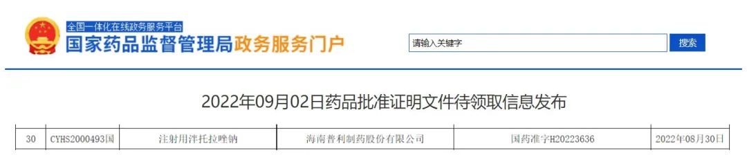 8月30日,太阳成集团tyc122ccvip生产的普利泮妥?注射用泮托拉唑钠通过国家药监局审批,视同通过一致性评价批准上市。