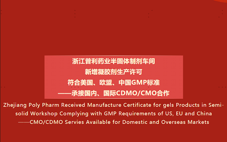 浙江普利药业半固体制剂车间新增凝胶剂生产许可,可符合美国、欧盟、中国GMP标准——承接国内、国际CDMO/CMO合作